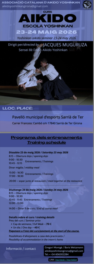 Lien Permanent pour cet article : https://www.aikido-yoshinkan-france.fr/a-la-une/espagne-girona-stage-les-23-24-mai-2026