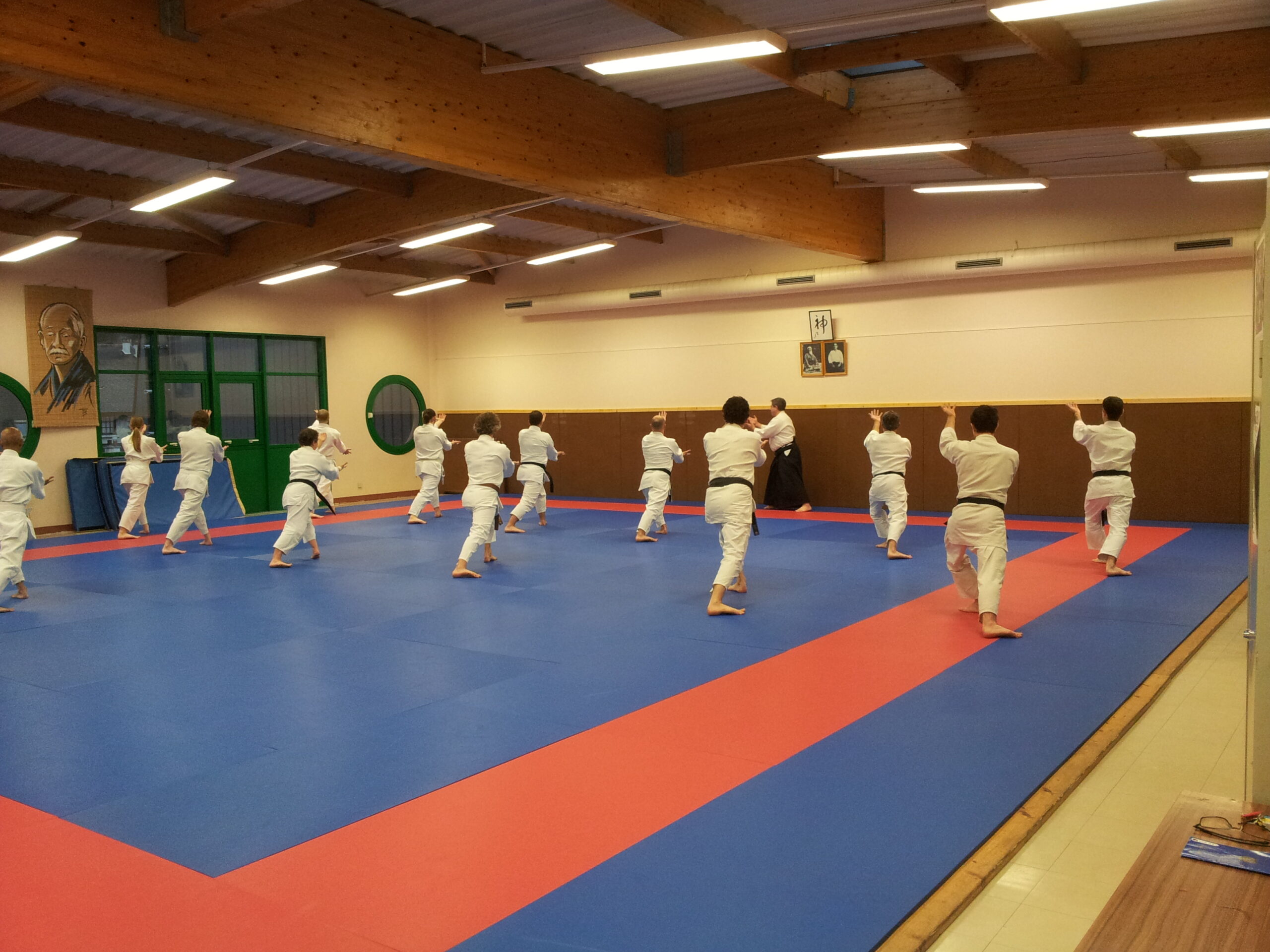 Le Dôjô se trouve tout en haut des escaliers, Samedi PORTE DROITE jusqu'à 16h / Dimanche PORTE GAUCHE.